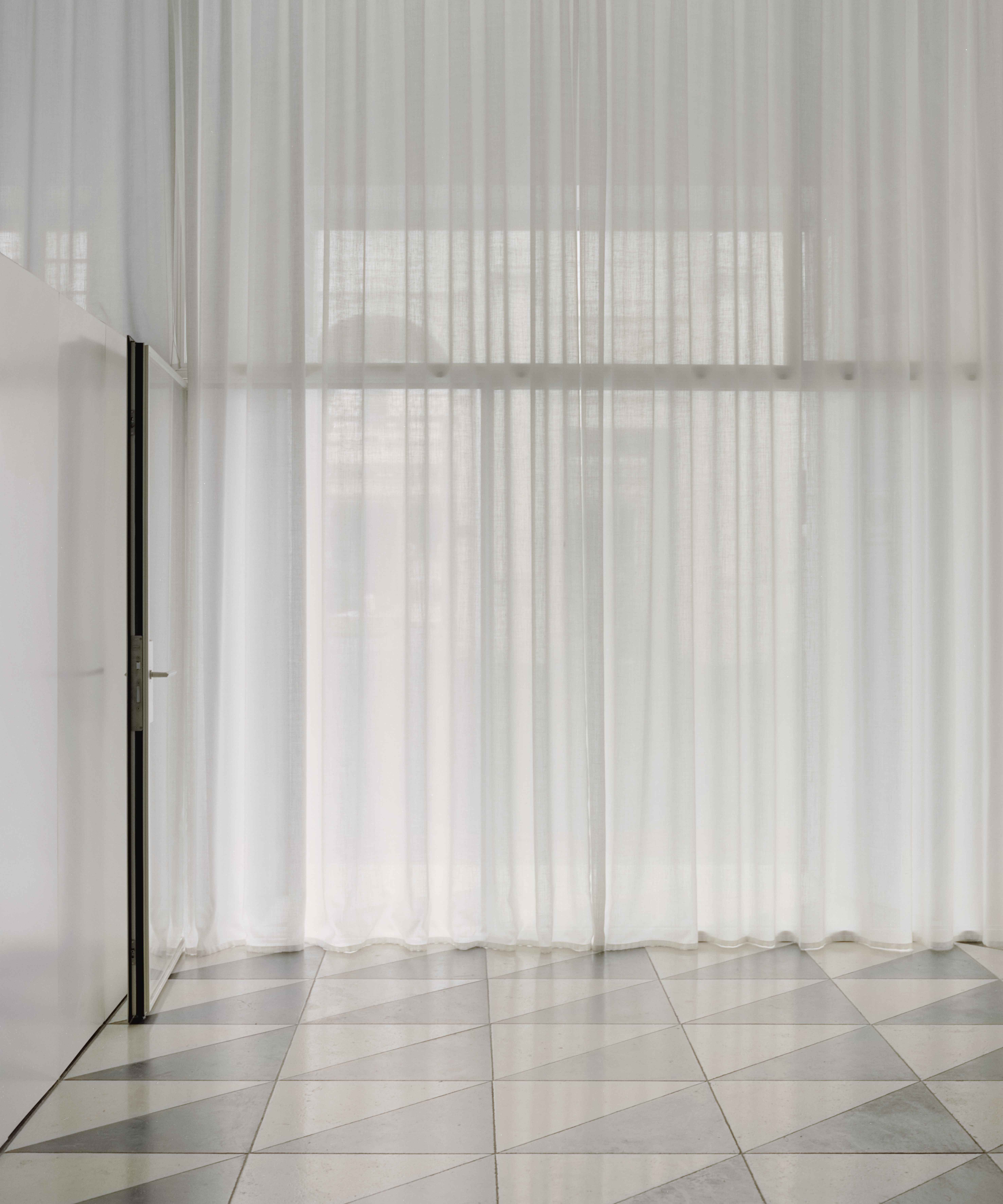The street frontage, framed by two large windows and an outdoor terrace, extends this adaptability into the city. Each new intervention is staged as a living installation, visible to the public and in constant dialogue with the urban context.