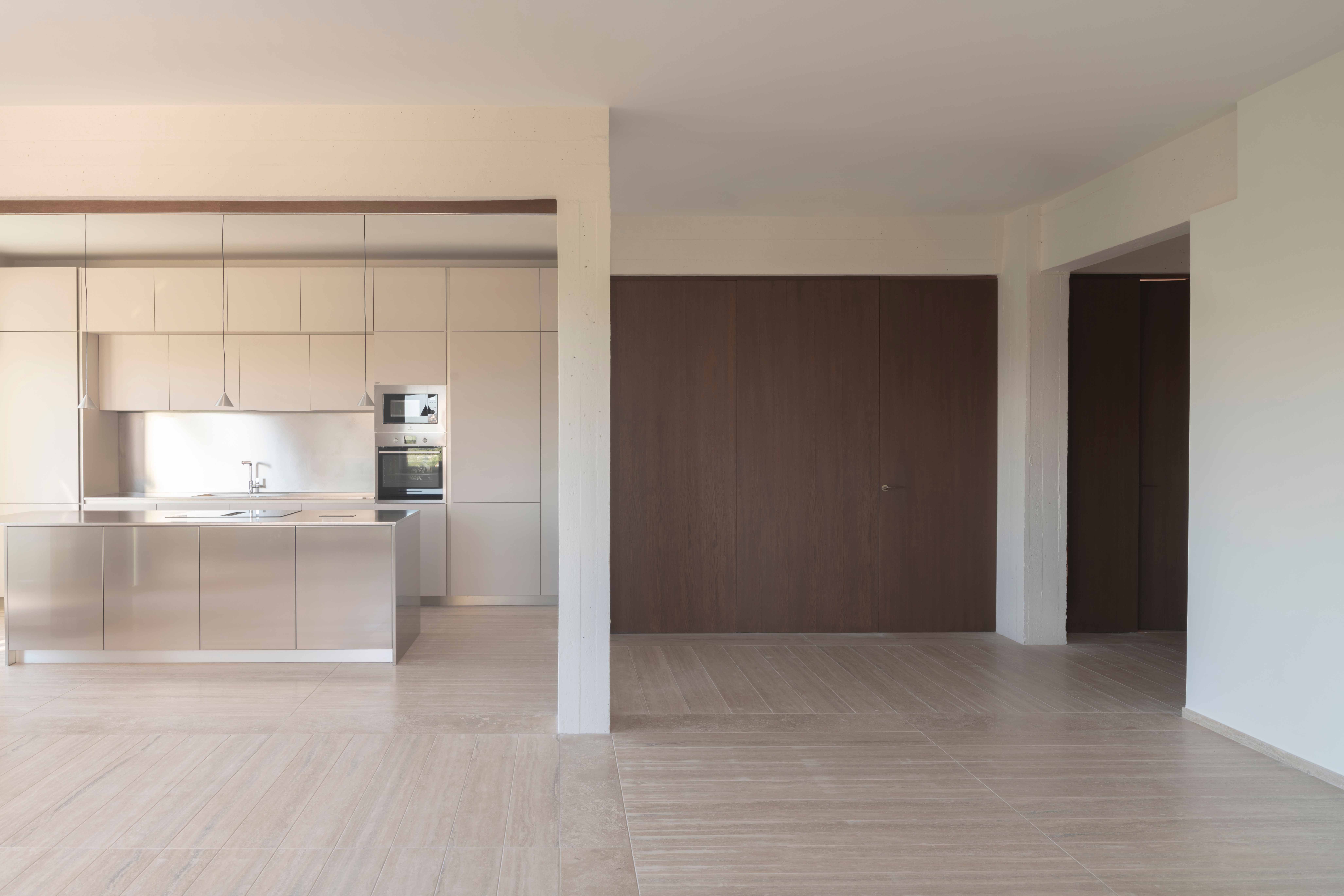 A suspended system of dry-mounted joinery allows wall panels to be replaced and reconfigured. Initially realized in aluminum laminates, the system allows to radically shift the visual identity of the space with each new installation.