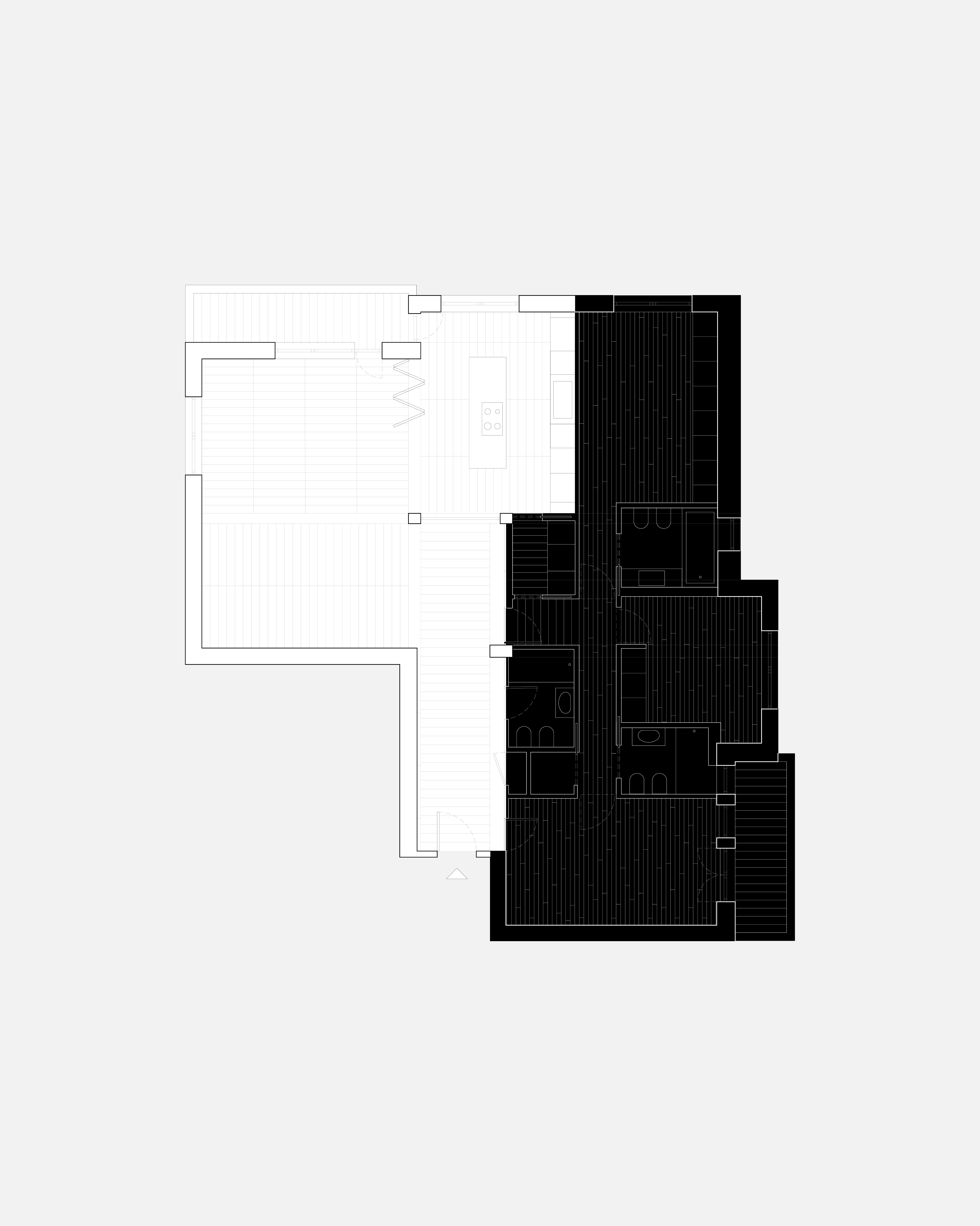 A continuous timber boiserie with integrated flush doors lines the entrance corridor, mediating between day and night areas. This system culminates in a folding partition that allows the kitchen to be either absorbed into the living space or fully screened off, offering spatial flexibility and adaptability to everyday domestic life.